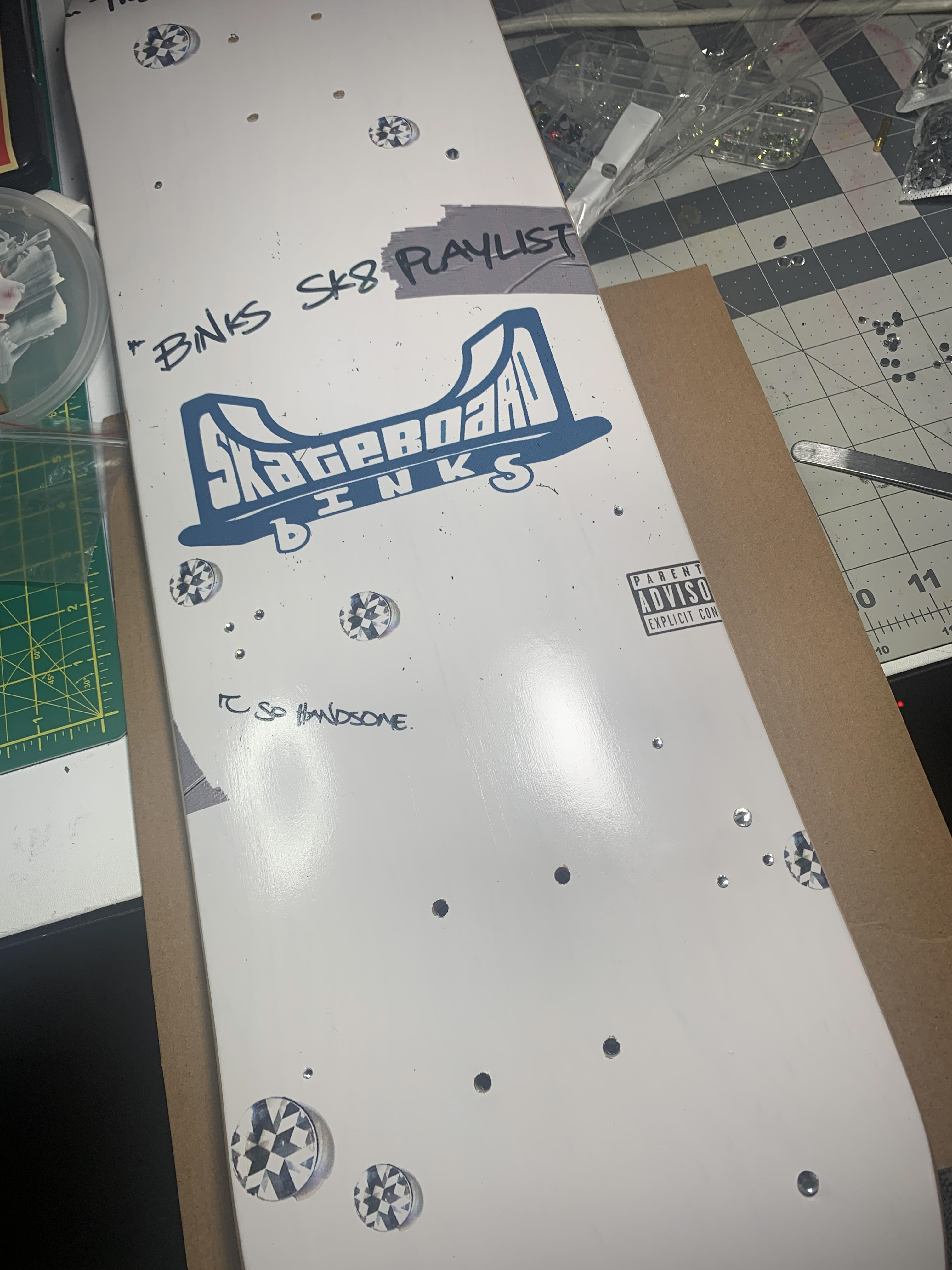 To further push promotion of the original 3 decks - I collaborated with a friend on a playlist for the release; he was given free rein to curate an immersive experience for the "Grand Opening" of Skateboard Binks!